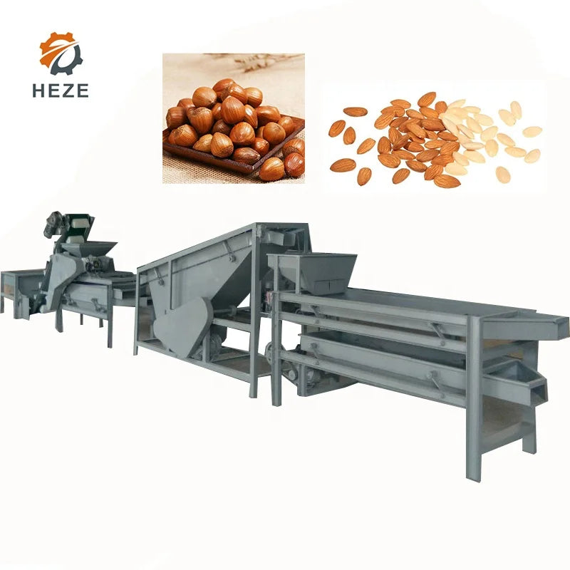 Découvrez notre système automatisé de décorticage professionnel, conçu pour traiter efficacement les amandes, pistaches, noisettes et autres fruits à coque.